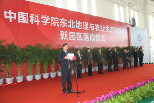 10月25日下午,陽光明媚、金風(fēng)和暢,東北地理所彩旗飄揚(yáng)、綠草如茵,質(zhì)樸典雅的樓群被裝扮一新,新園區(qū)落成儀式在體育館簡短而隆重的舉行。中國科學(xué)院院長、黨組書記、中科院院士白春禮,省委副書記、省長王儒林,省委常委、長春市委書記高廣濱,省委常委省委秘書長房俐,省政府秘書長李福春,中國科學(xué)院副秘書長吳建國,長春市市委常委、常務(wù)副市長肖萬民,長春市副市長、長春國家高新技術(shù)產(chǎn)業(yè)開發(fā)區(qū)管委會主任孫亞明,長春分院院長王利祥,我所所長何興元等領(lǐng)導(dǎo)出席了慶典儀式并為新園區(qū)落成剪彩。我所黨委書記胡乃澤主持了落成儀式,何興元所長致歡迎詞。