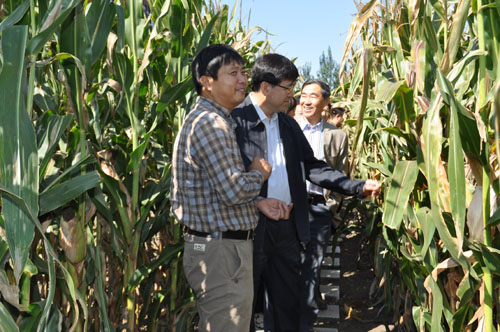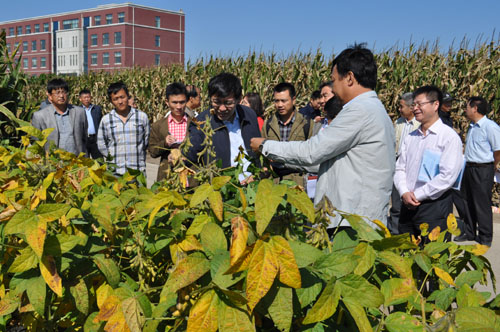 在長春綜合農(nóng)業(yè)試驗(yàn)站,陰和俊副院長實(shí)地考察了玉米育種試驗(yàn)田、超高產(chǎn)耐鹽堿東稻4號水稻新品種示范田、高光效新型種植模式示范田、大豆分子育種種質(zhì)資源圃,關(guān)義新、楊福、劉景雙和馮獻(xiàn)忠研究員分別就試驗(yàn)區(qū)的試驗(yàn)設(shè)置、研究內(nèi)容及取得進(jìn)展做了匯報(bào)。陰和俊副院長對我所近年來取得的一系列成果給予了肯定,并就成果的投入成本、效益提升及應(yīng)用推廣情況等問題進(jìn)行了細(xì)致的了解。