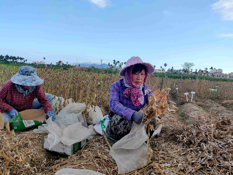李艷華在海南田間進(jìn)行大豆脫粒