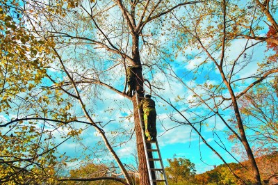 在吉林黃泥河國(guó)家級(jí)自然保護(hù)區(qū),巡護(hù)員為中華秋沙鴨搭建人工巢。光明圖片
