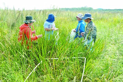 中國(guó)科學(xué)院東北地理與農(nóng)業(yè)生態(tài)研究所的科研人員在三江平原對(duì)恢復(fù)濕地進(jìn)行生態(tài)監(jiān)測(cè)。光明圖片