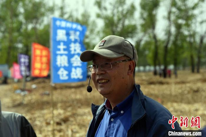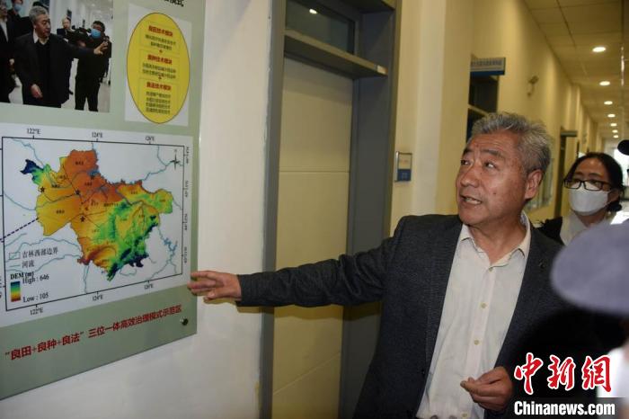 中科院東北地理所研究員關(guān)義新在“梨樹(shù)模式”試驗(yàn)基地介紹情況。 中新社記者 孫自法 攝