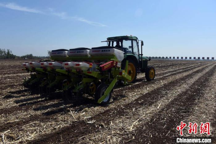 “梨樹(shù)模式”研制的免耕播種機(jī)在中科院“黑土糧倉(cāng)”科技會(huì)戰(zhàn)梨樹(shù)萬(wàn)畝示范區(qū)作業(yè)。 中新社記者 孫自法 攝
