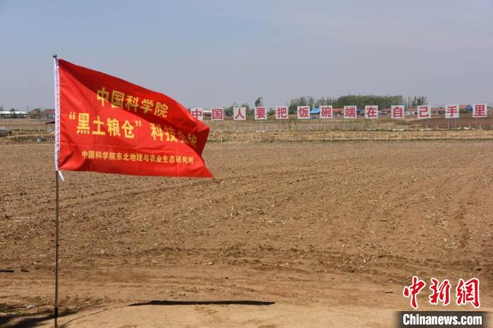 中科院“黑土糧倉(cāng)”科技會(huì)戰(zhàn)梨樹(shù)萬(wàn)畝示范區(qū),會(huì)戰(zhàn)旗幟、標(biāo)語(yǔ)醒目。 中新社記者 孫自法 攝