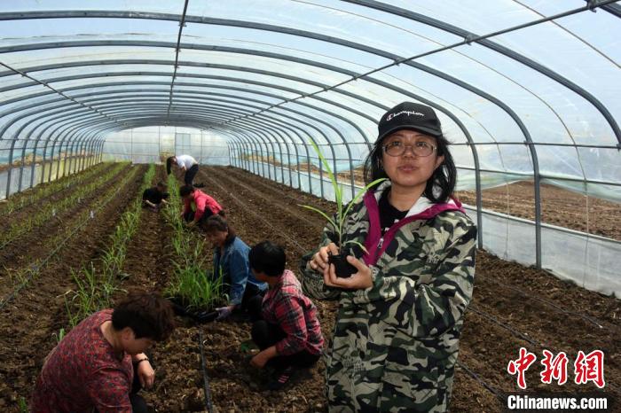 “梨樹(shù)模式”研究團(tuán)隊(duì)成員、中科院東北地理所敖曼博士展示介紹玉米育種研究進(jìn)展。 中新社記者 孫自法 攝