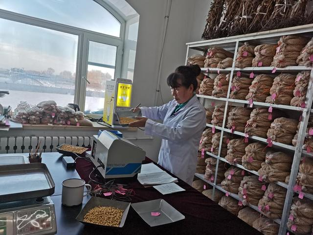 李艷華在測大豆蛋白、水分等數(shù)據(jù)。新華社記者王建 攝