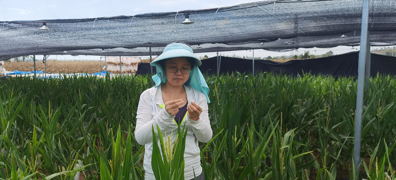 東北地理所敖曼高級(jí)工程師正在海南南繁基地進(jìn)行玉米雙單倍體育性調(diào)查