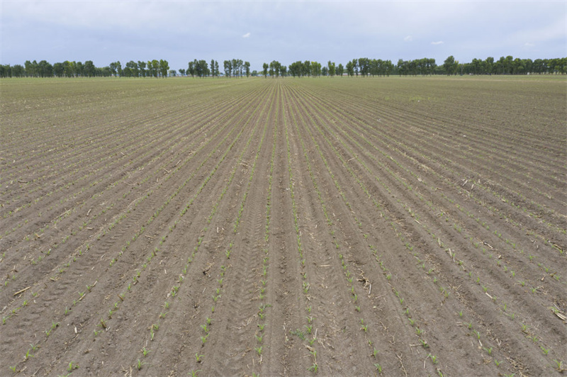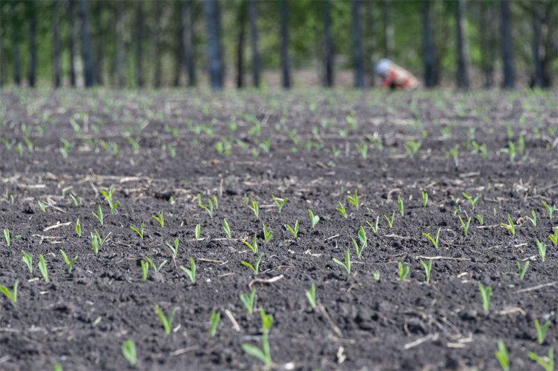 黑龍江省海倫市前進鎮(zhèn)光榮村一片黑土耕地內剛出苗的玉米(5月23日攝)。