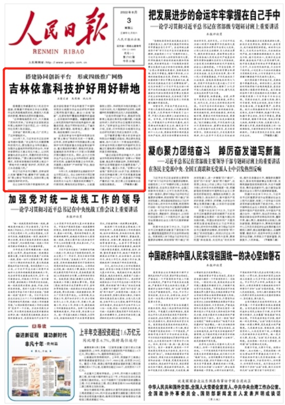 【人民日報】人民日報頭版頭條點贊:吉林依靠科技護好用好耕地