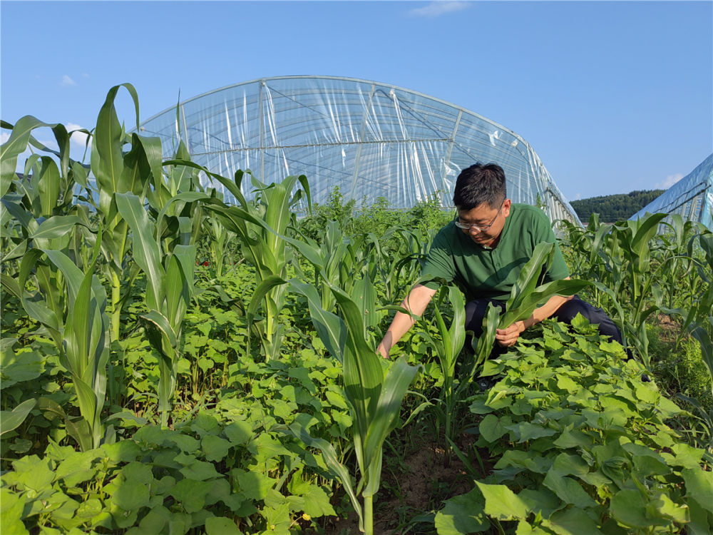 在吉林省東遼縣,中科院東北地理與農(nóng)業(yè)生態(tài)研究所研究員李向楠在試驗(yàn)田里觀察覆蓋作物(2022年7月5日攝)。新華社記者 薛欽峰 攝