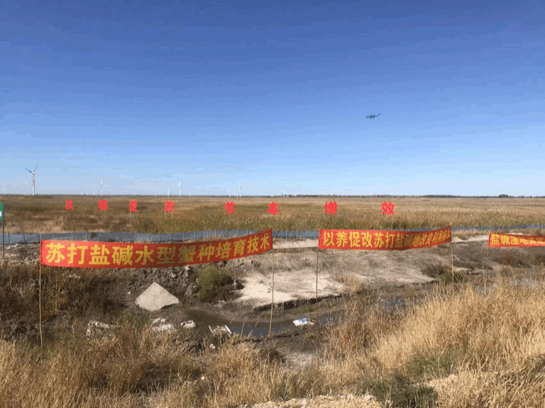 需要場地來進一步擴大養(yǎng)殖規(guī)模的葛俊,在尋找突破的過程中,也跟隨文波龍團隊將目光從鎮(zhèn)賚的泡塘、水田轉向了白花花的鹽堿地。