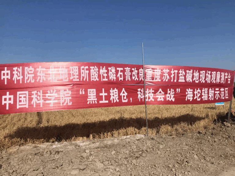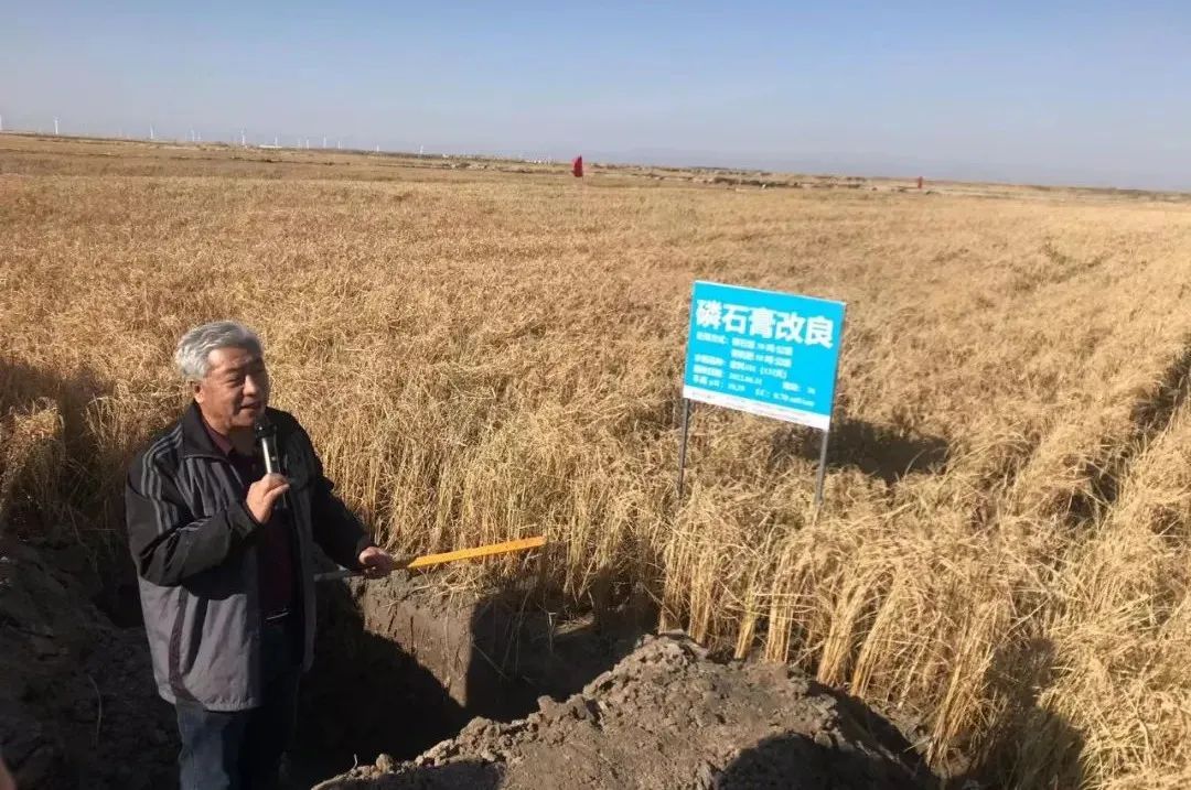 “我們的主要技術(shù)是用酸性磷石膏造良田,大面積改良鹽堿地。把不同的地塊,按照不同的鹽堿程度布設(shè)石膏的用量,經(jīng)過旋耕、耙地排鹽、洗鹽,然后移栽,后期管理,力爭第一年能夠達(dá)到畝產(chǎn)400公斤以上。”