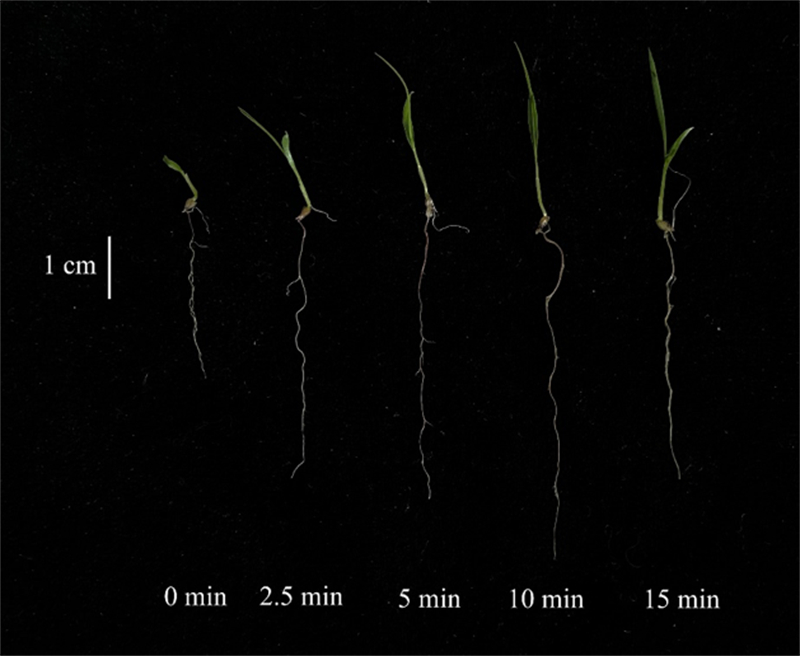 圖7 不同煙熏時間對狗尾草幼苗生長的影響(作者拍攝)