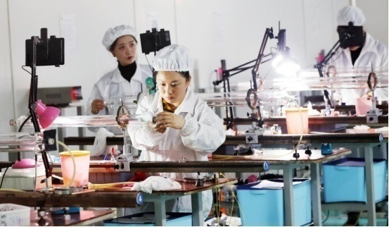 長(zhǎng)春某激光科技有限公司的車(chē)間內(nèi),員工正在進(jìn)行產(chǎn)品生產(chǎn) 石雷/攝