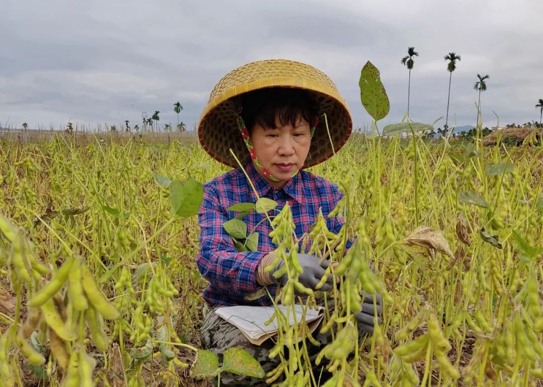 “繼續(xù)前行”!春節(jié)期間,從小年到元宵,李艷華從祖國最北跑到最南,是在遠(yuǎn)離家鄉(xiāng)的海南度過的——戴著大斗笠,穿行在濕熱的大豆叢中,忙著做大豆新品種生育期調(diào)查。