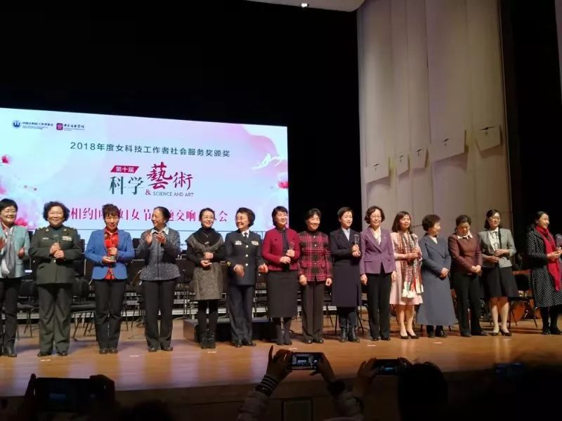 2019年3月,李艷華(左三)獲得中國女科技工作者協(xié)會頒發(fā)的2018年度女科技工作者社會服務(wù)獎(jiǎng)。(受訪者供圖)