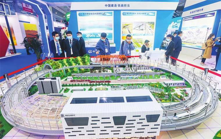 第十三屆中國—東北亞博覽會科技創(chuàng)新主題展區(qū),中外展商向觀眾展示最新科技成果、最時尚互動體驗和最潮流技術(shù)運用。圖為參觀者對中國中鐵鐵路接觸網(wǎng)供電系統(tǒng)演示沙盤產(chǎn)生濃厚興趣。(吉林日報記者 石雷 攝)