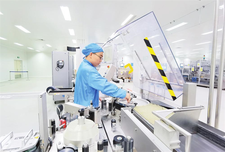 通化縣不斷強化人才引領(lǐng)科技創(chuàng)新工作力度,實現(xiàn)了以東寶、安睿特、安宇生物科技為代表的生物制藥企業(yè)快速崛起。圖為通化東寶藥業(yè)包裝車間。(吉林日報記者 隋二龍 ?攝)