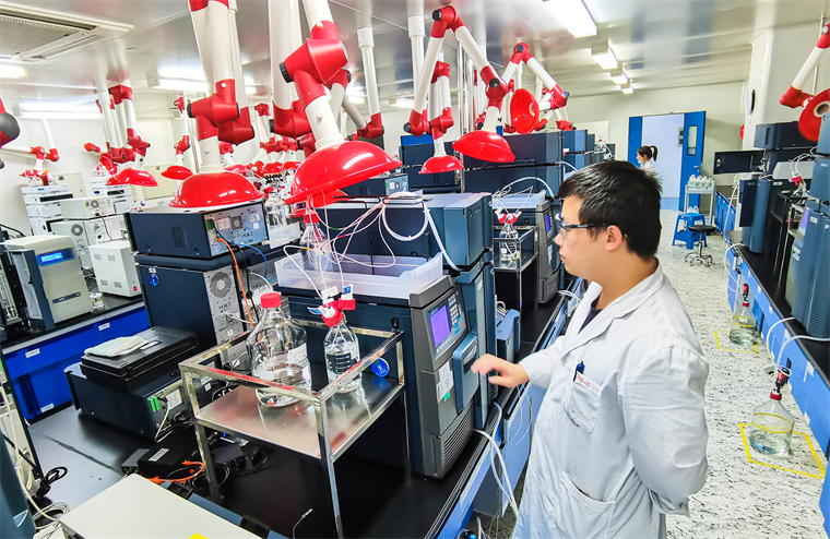 作為“長遼梅通白延醫(yī)藥健康產(chǎn)業(yè)走廊”的雙核之一,長春市全力助推醫(yī)藥健康企業(yè)創(chuàng)新發(fā)展,一批高科技企業(yè)步入高質(zhì)量發(fā)展軌道。圖為金賽藥業(yè)工作人員在高效液相色譜檢驗室對產(chǎn)品進行檢驗。(吉林日報記者 石雷 攝)