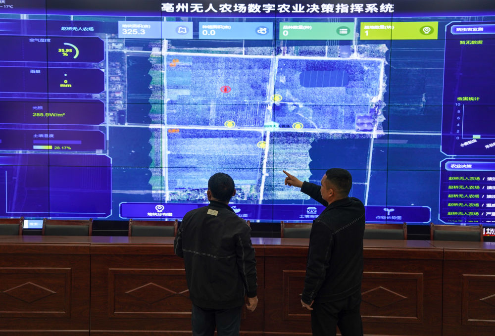 當(dāng)下,在安徽省亳州市譙城區(qū)智慧農(nóng)場里,“90后”新農(nóng)人焦瑞端坐在調(diào)度大廳內(nèi),通過近200平方米的智慧大屏將農(nóng)作物的長勢盡收眼底。