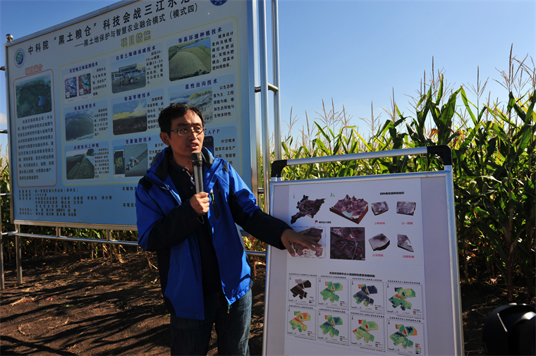 這一模式構(gòu)建了面向三江平原黑土地保護(hù)的4套技術(shù)體系,即黑土地坡耕地水蝕智能防控與綜合地力提升技術(shù)體系;白漿土旱田智能化保護(hù)利用技術(shù)體系;寒地水田智能化保護(hù)利用技術(shù)體系;基肥追肥全環(huán)節(jié)的水旱田智能施肥技術(shù)體系。團(tuán)隊(duì)利用立體監(jiān)測(cè)技術(shù)精準(zhǔn)識(shí)別技術(shù),智能化配置多種工程、農(nóng)藝和生物措施,建成“澇能排、旱能蓄”的樣板,實(shí)現(xiàn)糧食增產(chǎn)、水土流失減少,達(dá)到小流域尺度問題的“標(biāo)本兼治”。