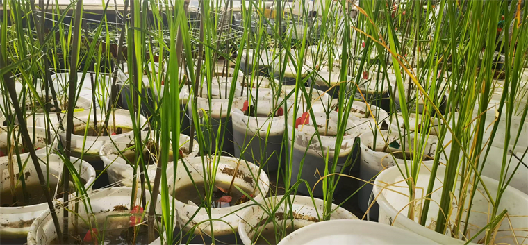 “我們?nèi)藶樵O(shè)置了不同程度鹽堿度的土壤條件,探索茭白的耐鹽堿閾值。你看這盆的鹽堿度就太高了,苗沒活;還要找到需肥規(guī)律,調(diào)節(jié)氮磷鉀不同比例和水平,看看哪種更高效。”姜文明說。