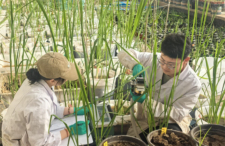 給各盆添水,測量葉長、葉寬、徑粗,逐一記錄……不知不覺間,已是上午10點,溫室里的溫度逐漸攀升。姜文明擦了擦額上的汗水,搬出光合儀。“光照條件達(dá)到要求,可以測光合速率、蒸騰速率等指標(biāo)了。有了這些數(shù)據(jù),才能更全面科學(xué)地判斷長勢。”他說。