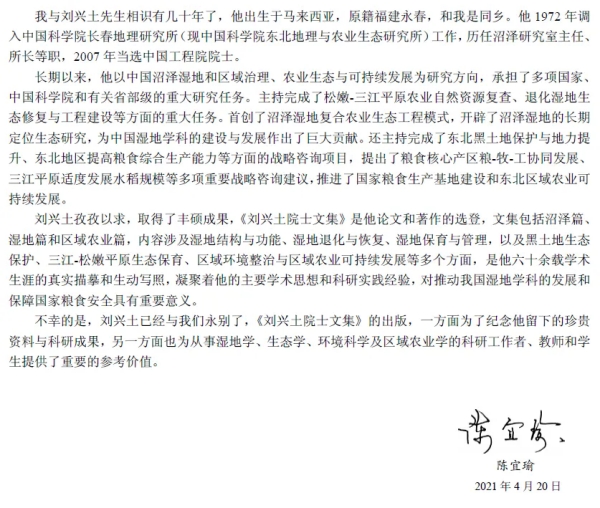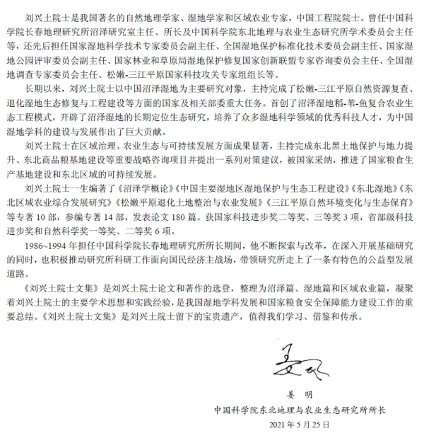 【賽拉艾芙】科學(xué)報(bào)國(guó)丨劉興土院士文集出版