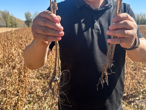 “這粒肥料的妙處在于既‘節(jié)本’又‘護土’,還能‘增產(chǎn)’,你看兩組田大豆的根系深度都不一樣,處理組大豆的根系更長。”東北農(nóng)業(yè)大學(xué)資源與環(huán)境學(xué)院教授姜佰文解釋說,硅鈣鎂硫等中量元素,恰好補上了長期施用“老三樣”造成的土壤養(yǎng)分缺口,像給作物根系“搭了腳手架”,刺激根系發(fā)育的同時,還能增強作物抗病抗逆能力;而微生物與礦質(zhì)元素的協(xié)同作用,不僅提高了肥料利用率,減少30%化肥用量,其保肥保墑的特性更讓板結(jié)的黑土地慢慢恢復(fù)“元氣”。