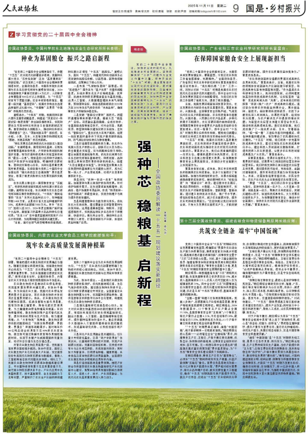 【人民政協(xié)報(bào)】強(qiáng)種芯 穩(wěn)糧基 啟新程—全國(guó)政協(xié)委員解讀“十五五”規(guī)劃建議落實(shí)新路徑