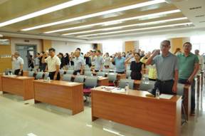 與會黨員跟隨領誓人宣誓,共同重溫入黨誓詞,回憶入黨時的錚錚誓言,紀念入黨時面對黨旗宣誓時的心潮澎湃,堅定理想信念、永葆入黨初心。
