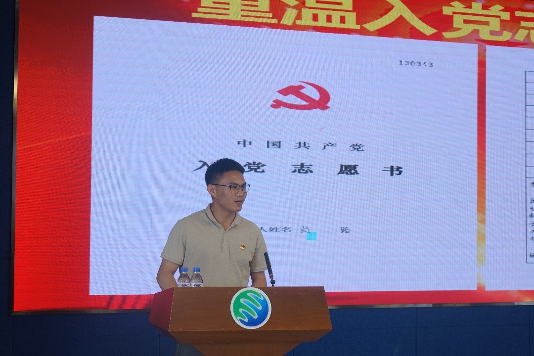 在重溫入黨志愿書環(huán)節(jié),由梁正偉研究員、馮獻(xiàn)忠研究員和肖路同學(xué)分別代表不同年齡段,不同時(shí)期入黨的共產(chǎn)黨員,重溫他們的入黨志愿書,與大家共同追憶初心使命。