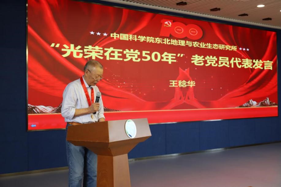 頒獎儀式上,9位滿頭銀發(fā)的老人格外引人注目,作為“光榮在黨50年”的老黨員代表,他們步履堅定的走上領(lǐng)獎臺,由姜明、蘇陽為老同志頒發(fā)紀念章,當金燦燦的紀念章掛在他們胸前時,會場上爆發(fā)出經(jīng)久不息的掌聲。“光榮在黨50年”的老黨員代表王稔華研究員、趙魁義研究員,吉林省直機關(guān)“兩優(yōu)一先”的優(yōu)秀代表鐘榮珍研究員,青年科技工作者代表王冬梅分別做了主題發(fā)言,道出了老一代共產(chǎn)黨員矢志不渝的執(zhí)著精神,講出了年輕一代共產(chǎn)黨人的接續(xù)傳承。