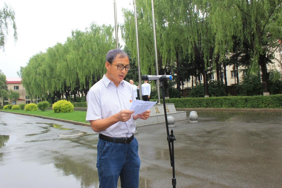 哈爾濱所區(qū)同步舉行升國旗儀式,副所長王宗明發(fā)表講話。