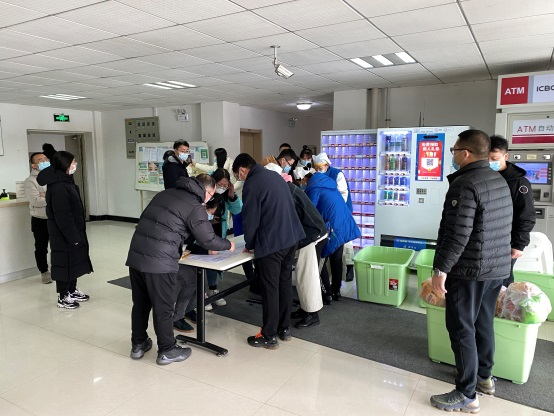由機(jī)關(guān)管理部門黨員、物業(yè)公司職工組建成10余人機(jī)關(guān)干部突擊隊,協(xié)助藍(lán)珀湖社區(qū)開展所內(nèi)防疫工作,組織全所職工及家屬進(jìn)行核酸檢測、發(fā)放核酸自測試劑等。