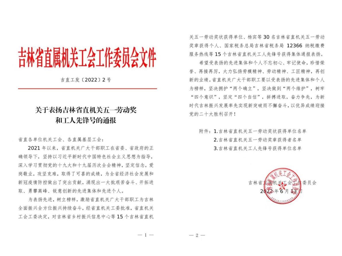 為表?yè)P(yáng)先進(jìn),樹(shù)立榜樣,激勵(lì)省直機(jī)關(guān)廣大干部職工為吉林全面振興全方位振興持續(xù)奮斗,經(jīng)省直機(jī)關(guān)工委批準(zhǔn),省直機(jī)關(guān)工會(huì)工委決定,對(duì)15個(gè)吉林省直機(jī)關(guān)五一勞動(dòng)獎(jiǎng)狀獲得單位、30名吉林省直機(jī)關(guān)五一勞動(dòng)獎(jiǎng)?wù)芦@得個(gè)人、15個(gè)吉林省直機(jī)關(guān)工人先鋒號(hào)獲得集體通報(bào)表?yè)P(yáng)。東北地理所獲得吉林省直機(jī)關(guān)五一勞動(dòng)獎(jiǎng)狀。