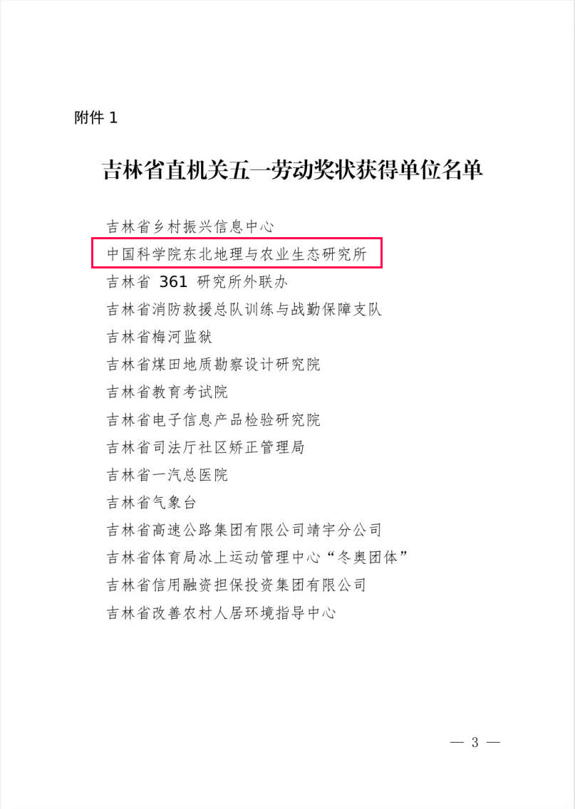 喜報(bào)頻傳!中國(guó)科學(xué)院東北地理與農(nóng)業(yè)生態(tài)研究所榮獲吉林省直機(jī)關(guān)五一勞動(dòng)獎(jiǎng)狀!