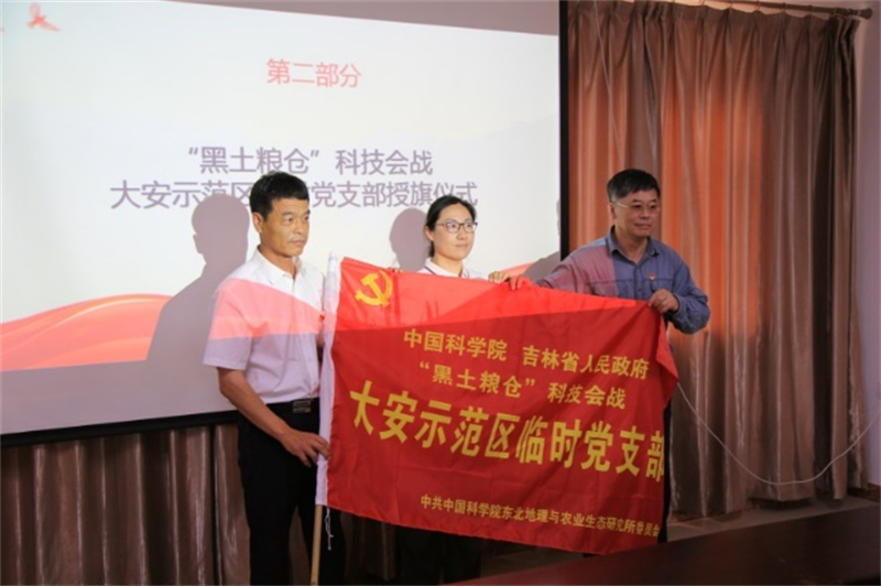 舉行了授旗儀式,蘇陽作動(dòng)員講話。他指出,開展“黑土?xí)?zhàn)”是中國科學(xué)院和吉林省人民政府面向國家需求,立足國家糧食安全壓艙石戰(zhàn)略,深入貫徹落實(shí)習(xí)近平總書記“把黑土地用好養(yǎng)好”的重要指示精神的具體實(shí)踐。攻堅(jiān)克難是我們黨的優(yōu)良傳統(tǒng),也是傳家之寶,要讓黨旗在示范區(qū)一線高高飄揚(yáng)。他強(qiáng)調(diào),為充分發(fā)揮“黑土?xí)?zhàn)”前沿陣地的戰(zhàn)斗堡壘作用,所黨委第一時(shí)間在海倫、大安、三江、長春等四個(gè)示范區(qū)成立了臨時(shí)黨支部,實(shí)現(xiàn)的黨的組織和黨的工作全覆蓋,這是在科技會戰(zhàn)中全面加強(qiáng)黨的領(lǐng)導(dǎo)的重要內(nèi)容。希望大家“不忘初心、牢記使命”,腳踏實(shí)地,在急難險(xiǎn)重任務(wù)中沖鋒在前,以銳意進(jìn)取的姿態(tài),投入到創(chuàng)新科技、服務(wù)國家、造福人民的偉大斗爭中去,傳承興土精神,為用好養(yǎng)好黑土地做出國家戰(zhàn)略科技力量應(yīng)有的貢獻(xiàn),不辱使命!