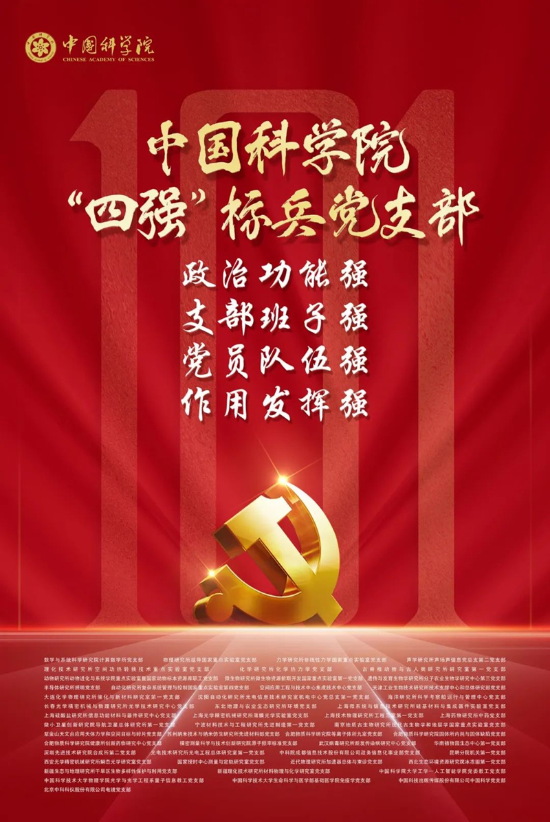 為加強基層黨組織建設(shè),充分發(fā)揮基層黨組織的戰(zhàn)斗堡壘作用和黨員的先鋒模范作用,6月30日上午,在中國科學院慶祝建黨101周年表彰交流會上,院黨的建設(shè)工作領(lǐng)導小組授予50個黨支部中國科學院“四強”標兵黨支部稱號。本所環(huán)境黨支部榮獲此稱號。