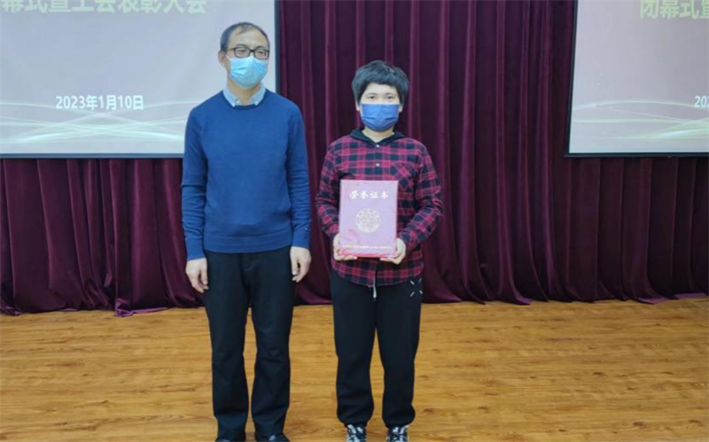 此次活動還表彰了參加全國職工線上運動會和中科院“學(xué)百位科學(xué)家 行百日健身路”本所排名前三名的工會會員及獲得參與獎代表,王宗明、張嬛為獲獎?wù)哳C發(fā)證書。