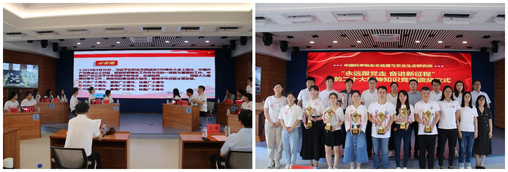 舉辦“永遠(yuǎn)跟黨走 奮進(jìn)新征程”黨的二十大精神知識競賽。各黨支部組成濕地隊(duì)、黑土隊(duì)、大豆隊(duì)、遙感區(qū)域隊(duì)、管理支撐隊(duì)、研究生隊(duì)共6支隊(duì)伍參賽。競賽設(shè)必答題、輪答題、搶答題、風(fēng)險(xiǎn)題四個(gè)環(huán)節(jié)。各代表隊(duì)選手準(zhǔn)備充分,氣氛緊張激烈,觀眾掌聲不斷。最終黑土隊(duì)獲得冠軍,遙感區(qū)域隊(duì)獲得亞軍,大豆隊(duì)獲得季軍;管理支撐隊(duì)獲得團(tuán)結(jié)拼搏獎(jiǎng),研究生隊(duì)獲得齊心協(xié)力獎(jiǎng),濕地隊(duì)獲得最佳風(fēng)采獎(jiǎng)。
