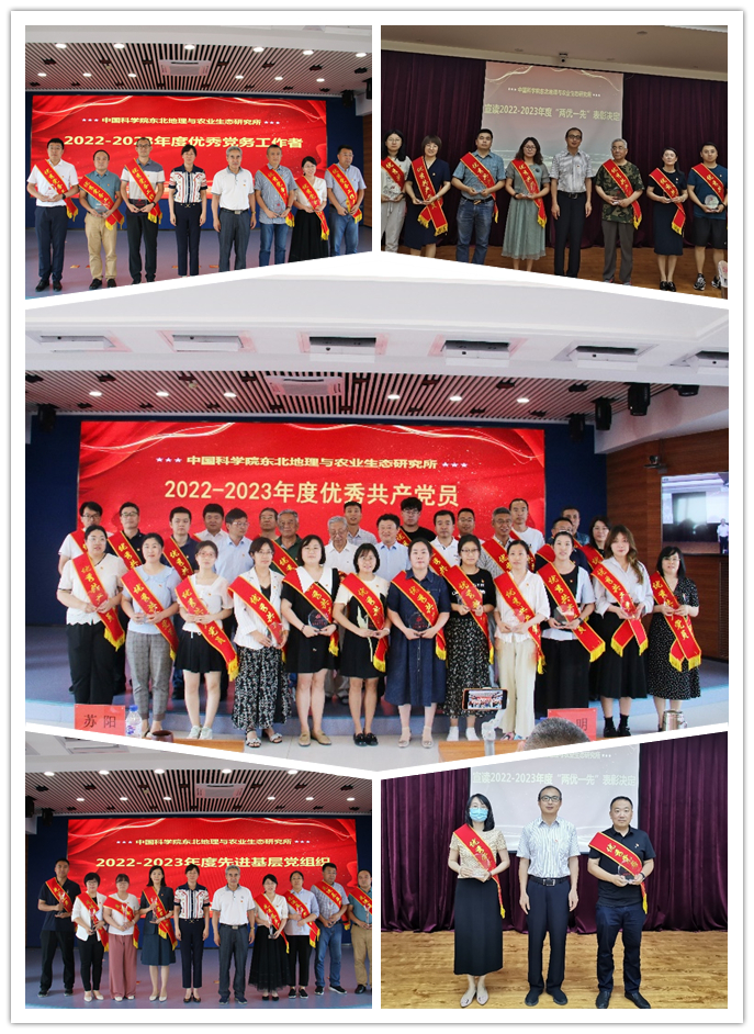 召開“兩優(yōu)一先”表彰大會。為激勵(lì)基層黨組織和全體黨員堅(jiān)定理想信念、砥礪初心使命、勇于擔(dān)當(dāng)作為,更好發(fā)揮“兩個(gè)作用”,在建黨102周年之際,評選表彰一批東北地理所優(yōu)秀共產(chǎn)黨員、優(yōu)秀黨務(wù)工作者、先進(jìn)基層黨組織,教育激勵(lì)廣大黨員干部積極投身研究所科技創(chuàng)新,為實(shí)現(xiàn)“黑土糧倉”科技會戰(zhàn)目標(biāo)任務(wù)貢獻(xiàn)力量。所黨政班子成員為獲得2022-2023年度優(yōu)秀共產(chǎn)黨員、優(yōu)秀黨務(wù)工作者和先進(jìn)基層黨組織代表頒發(fā)了獎(jiǎng)杯、獎(jiǎng)牌。