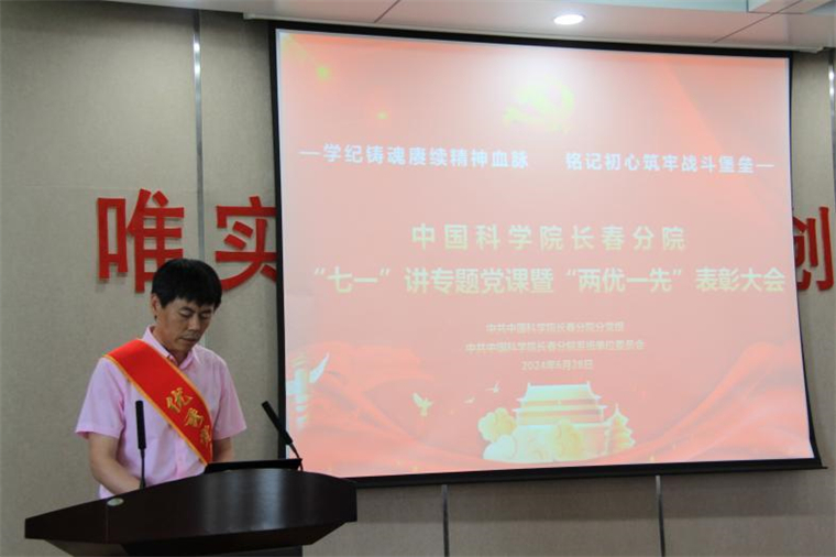 為深入學(xué)習(xí)貫徹習(xí)近平總書記關(guān)于黨紀(jì)學(xué)習(xí)教育的重要講話和重要指示精神,熱烈慶祝中國共產(chǎn)黨成立103周年,6月28日上午,中國科學(xué)院長春分院隆重舉辦2024年度“七一”講專題黨課暨“兩優(yōu)一先”表彰大會(huì)。會(huì)上,中共中國科學(xué)院長春分院分黨組、中共中國科學(xué)院長春分院系統(tǒng)單位委員會(huì)對(duì)在長春分院系統(tǒng)單位過去一年黨建工作中,表現(xiàn)突出的集體和個(gè)人給予表彰。