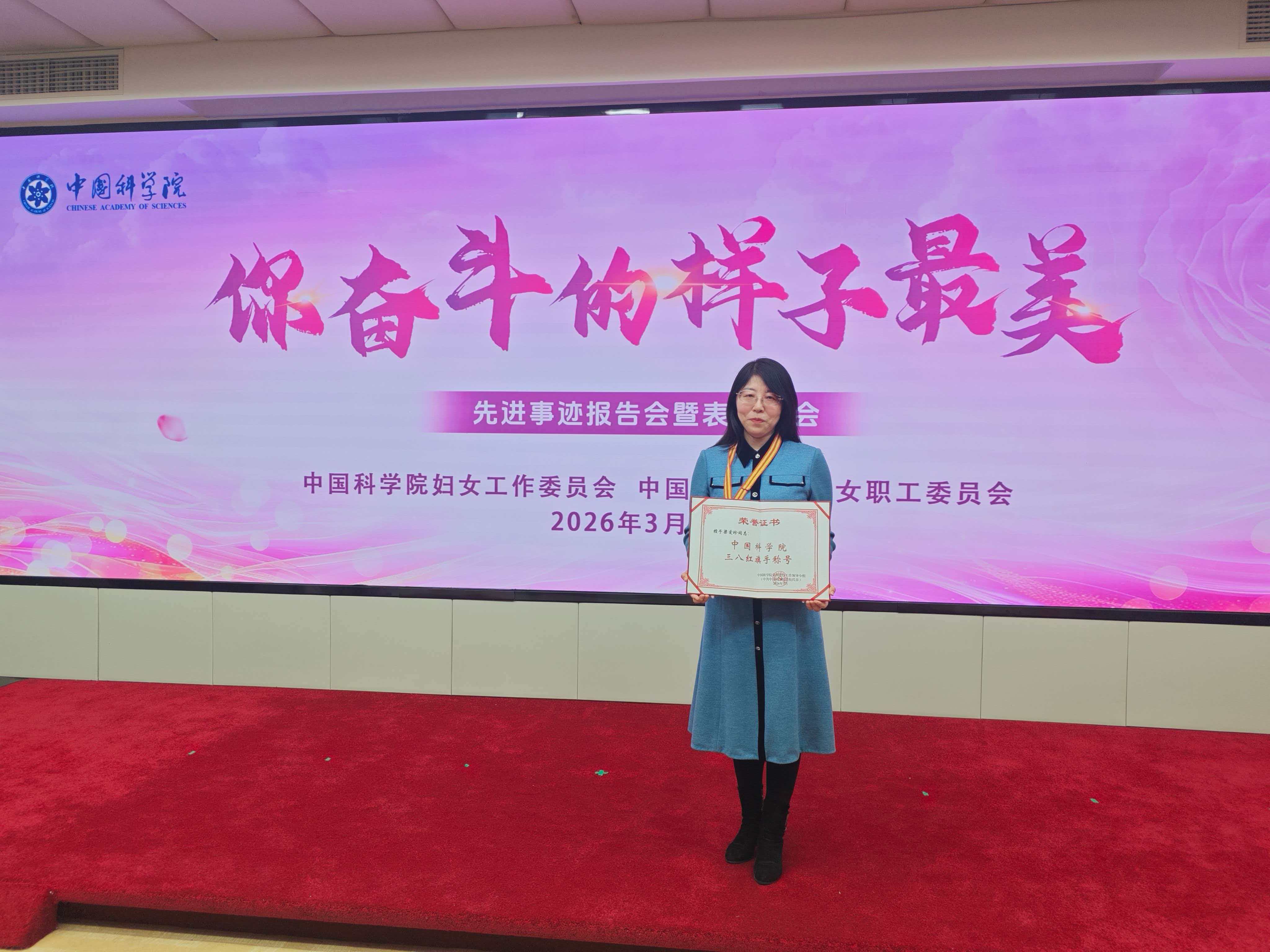 為選樹(shù)先進(jìn)典型,激勵(lì)引領(lǐng)全院廣大女干部職工積極投身科技創(chuàng)新,努力為建設(shè)世界科技強(qiáng)國(guó)作出貢獻(xiàn),在2026年“三八”國(guó)際勞動(dòng)?jì)D女節(jié)來(lái)臨之際,3月5日上午,中國(guó)科學(xué)院婦女工作委員會(huì)、中國(guó)科學(xué)院工會(huì)女職工委員會(huì)舉辦“你奮斗的樣子最美”先進(jìn)事跡報(bào)告會(huì)暨表彰大會(huì)。大會(huì)表彰了15名“中國(guó)科學(xué)院三八紅旗手”和5個(gè)“中國(guó)科學(xué)院三八紅旗集體”。我所梁愛(ài)珍研究員榮獲第三屆“中國(guó)科學(xué)院三八紅旗手”榮譽(yù)稱號(hào)。