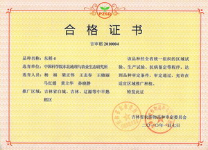 “東稻4號(hào)”是由我所大安堿地生態(tài)試驗(yàn)站、鹽漬土生態(tài)與改良學(xué)科組研究員楊福、梁正偉、王志春育種團(tuán)隊(duì)選育的水稻新品種,2010年1月通過(guò)吉林省農(nóng)作物品種審定委員會(huì)審定。該品種生育期130-131天,在吉林省屬中早熟水稻品種。具有耐肥抗倒伏、耐鹽堿、抗稻瘟病、抗冷、早生快發(fā)、活稈成熟等特點(diǎn),尤其適合于吉林省白城和松原地區(qū)鹽堿地種植,是一個(gè)綜合性狀優(yōu)良的超高產(chǎn)水稻抗逆新品種,具有重要的推廣價(jià)值和應(yīng)用前景。