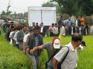 早在今年8月28日,為了加大新品種的認(rèn)知度和惠農(nóng)推廣,讓稻農(nóng)實(shí)地了解“東稻4號(hào)”的生長(zhǎng)特性與田間表現(xiàn),楊福研究員在白城市吉林油田洮河農(nóng)場(chǎng)組織召開(kāi)了“東稻4號(hào)”水稻推廣現(xiàn)場(chǎng)會(huì)。來(lái)自中國(guó)科學(xué)院長(zhǎng)春分院、吉林省種子管理總站、白城市種子管理站、白城市農(nóng)業(yè)科學(xué)院和吉林西部各市縣水稻辦的專(zhuān)家領(lǐng)導(dǎo),以及全省各地的經(jīng)銷(xiāo)商、農(nóng)民代表共計(jì)150多人參加了現(xiàn)場(chǎng)會(huì),與會(huì)人員反響強(qiáng)烈,一致認(rèn)為“東稻4號(hào)”長(zhǎng)勢(shì)喜人、豐產(chǎn)性好,有望取代目前吉林西部推廣面積最大的同熟期水稻品種“長(zhǎng)白9號(hào)”。中國(guó)科學(xué)院農(nóng)業(yè)項(xiàng)目辦原主任王大生等一行9月4日親臨現(xiàn)場(chǎng)考察時(shí)對(duì)“東稻4號(hào)”良好長(zhǎng)勢(shì)與產(chǎn)量潛力也給予了充分肯定。指出,一定要積極組織申報(bào)國(guó)家農(nóng)業(yè)科技成果轉(zhuǎn)化基金項(xiàng)目支持,加大“東稻4號(hào)”推廣力度,把優(yōu)秀的農(nóng)業(yè)科技成果迅速轉(zhuǎn)化為生產(chǎn)力,為農(nóng)民造福。