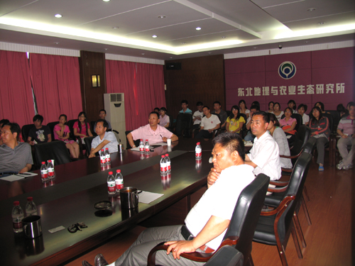 來自地理與遙感信息研究中心、東北區(qū)域發(fā)展研究中心和濕地生態(tài)與環(huán)境研究中心的科研人員及研究生等50余人聽取了報告,并針對感興趣的問題與馮志強(qiáng)博士、吳長山博士進(jìn)行了交流與討論。張平宇副所長、遙感中心科研人員等還就今后學(xué)術(shù)交流與合作及高端人才引進(jìn)等方面與兩位博士進(jìn)行了深入的探討與交流。