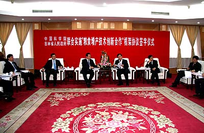 日前,中國科學院副院長李家洋與吉林省常務副省長竺延風代表院省雙方在北京簽署了“聯(lián)合實施‘糧食增產技術創(chuàng)新合作’框架協(xié)議”。中國科學院常務副院長白春禮、吉林省省長韓長賦等領導出席簽字儀式并講話。施爾畏副院長主持儀式。