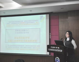任春穎副研究員做了題為“關(guān)于如何撰寫青年科學(xué)基金項目申請書的體會”的報告,報告分為基本信息表、申請書正文內(nèi)容以及個人體會三方面對申請人基金項目文本撰寫的經(jīng)驗和注意事項進行了詳細(xì)而生動的講解。作為國家自然科學(xué)基金委評審組專家,呂憲國研究員從會審專家的角度對申請人基金文本撰寫的注意事項、評審專家的關(guān)注要點都作了詳細(xì)分析。最后,各位專家針對科研人員有關(guān)提問進行了答疑。