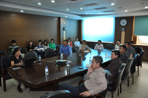張立博士首先就Mitsch and Gosselink主編的2007版《Wetlands》一書中的有關濕地價值中的污染、生態(tài)系統(tǒng)和全球變化等內容進行了簡要介紹,然后就流域濕地恢復,特別是Olentangy河流濕地園的有關科研內容、研究成果進行了系統(tǒng)介紹。學術報告后,張立博士同與會的科研人員進行了廣泛的交流。